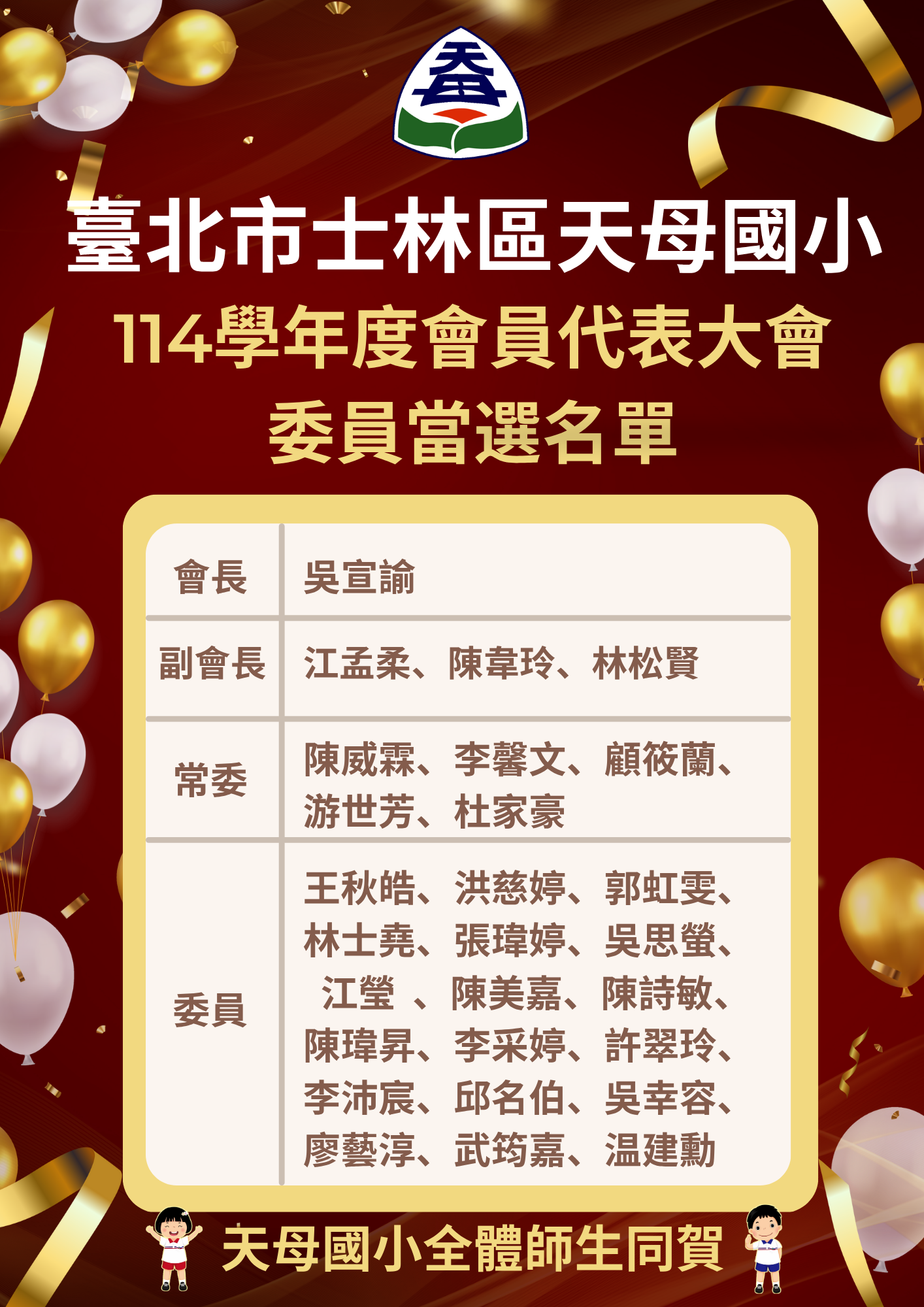 本校於114年10月2日晚上召開114學年度天母國小會員代表大會,