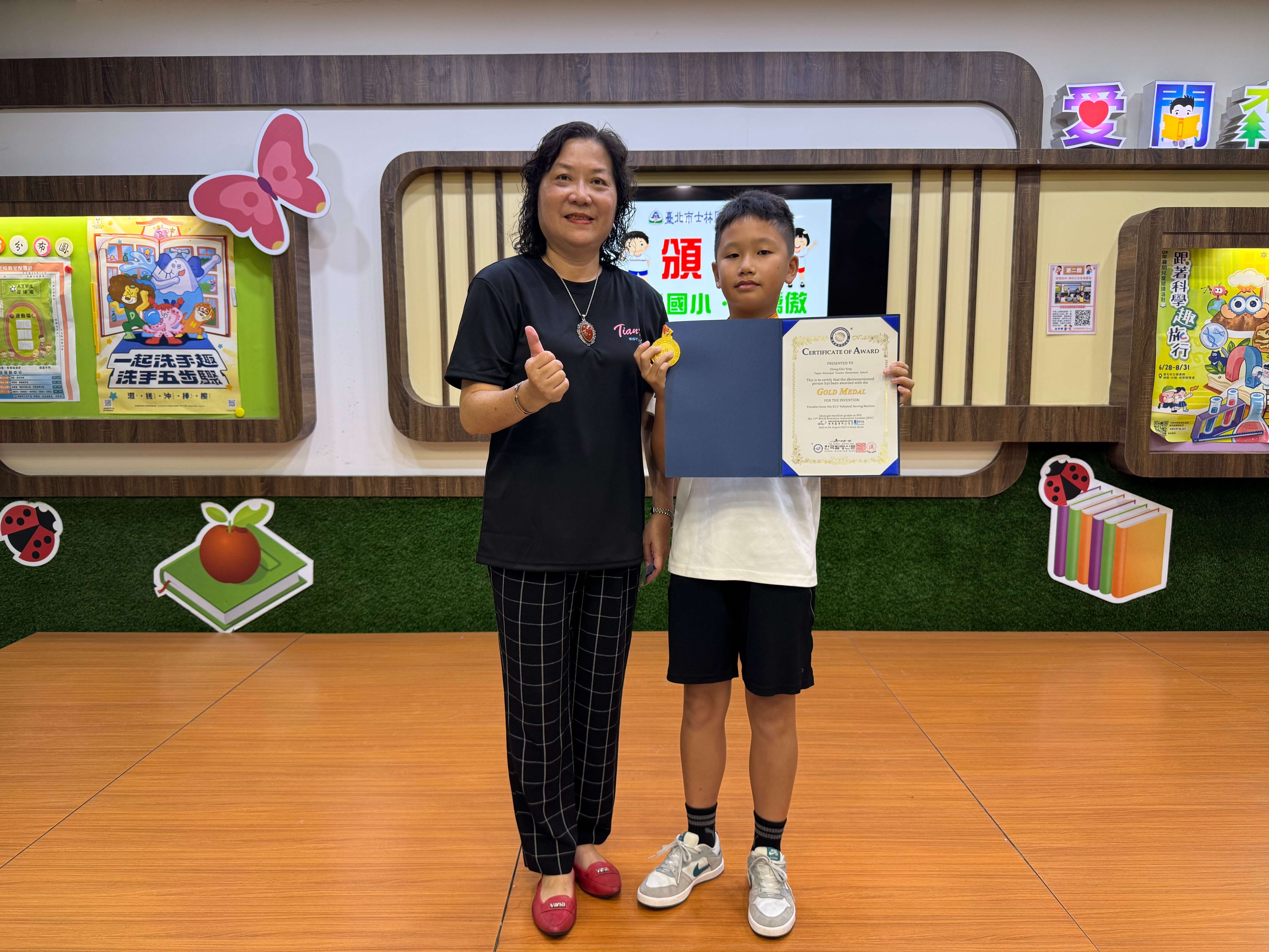 606班楊呈加以「可攜式家用D.I.Y.排球發球機」參加2025第11屆韓國WiC世界創新發明大賽,在19個國家共211件不分齡的參賽作品中,脫穎而出榮獲金牌。